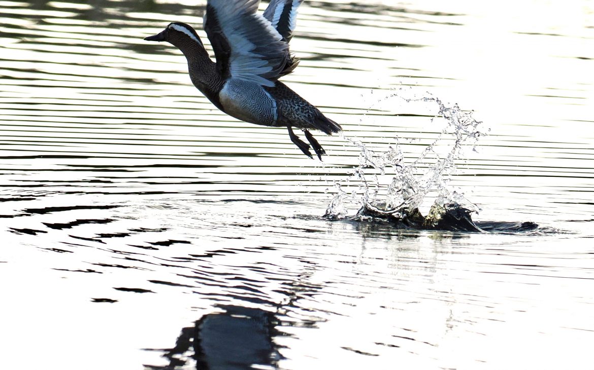 Garganey – The drake was back on Porth Hellick Pool late evening.