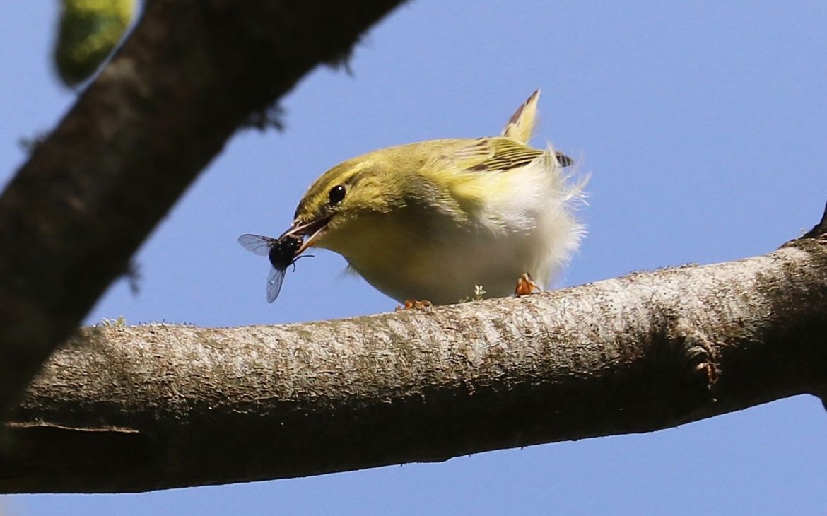 Wood Warbler – 1 in a sycamore in front of the house named Hanjaque at the Sunnyside end of Rocky Hill Lane (photo).